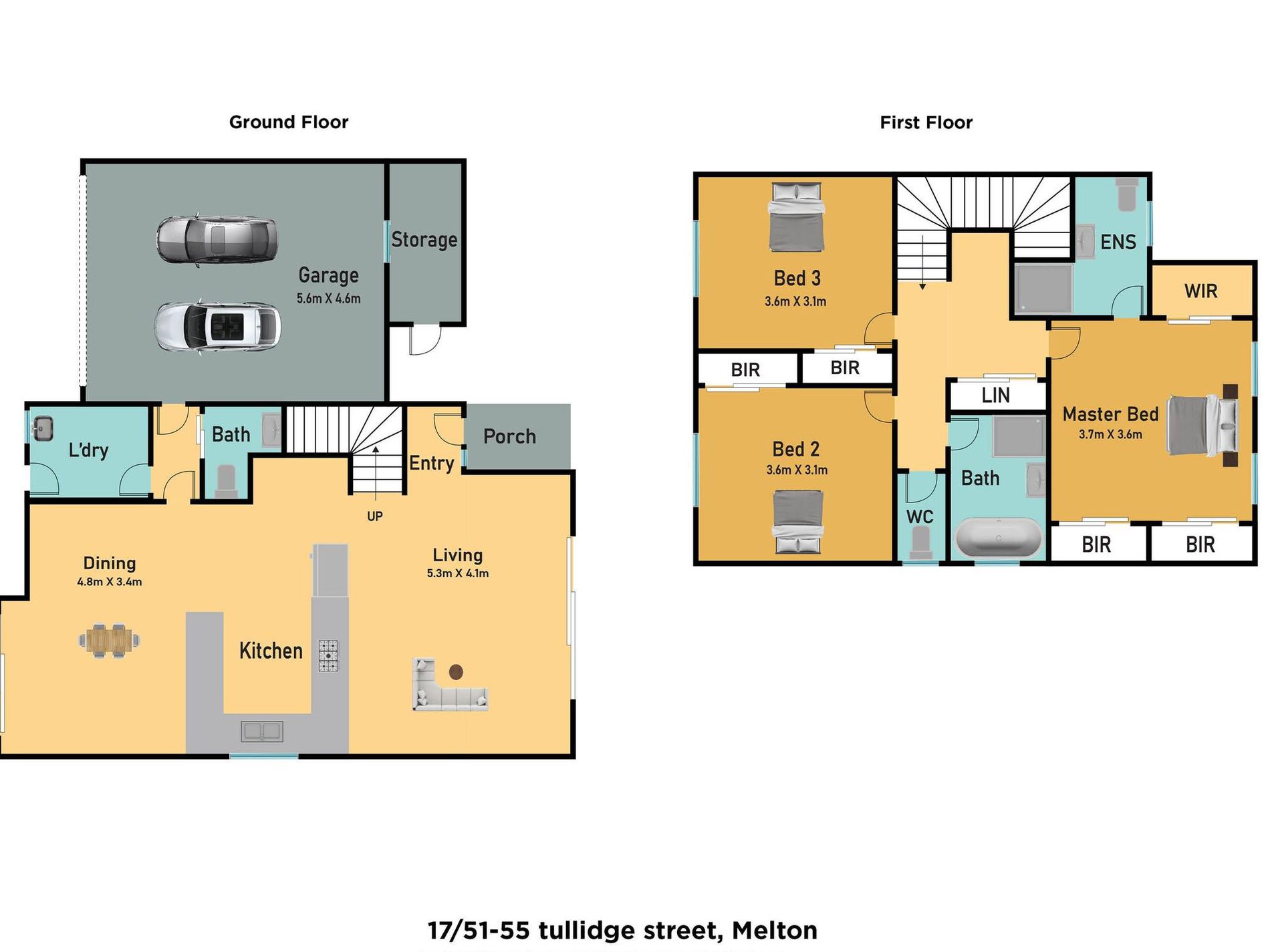 - 3 large Bedrooms master with 3 robes and Ensuite