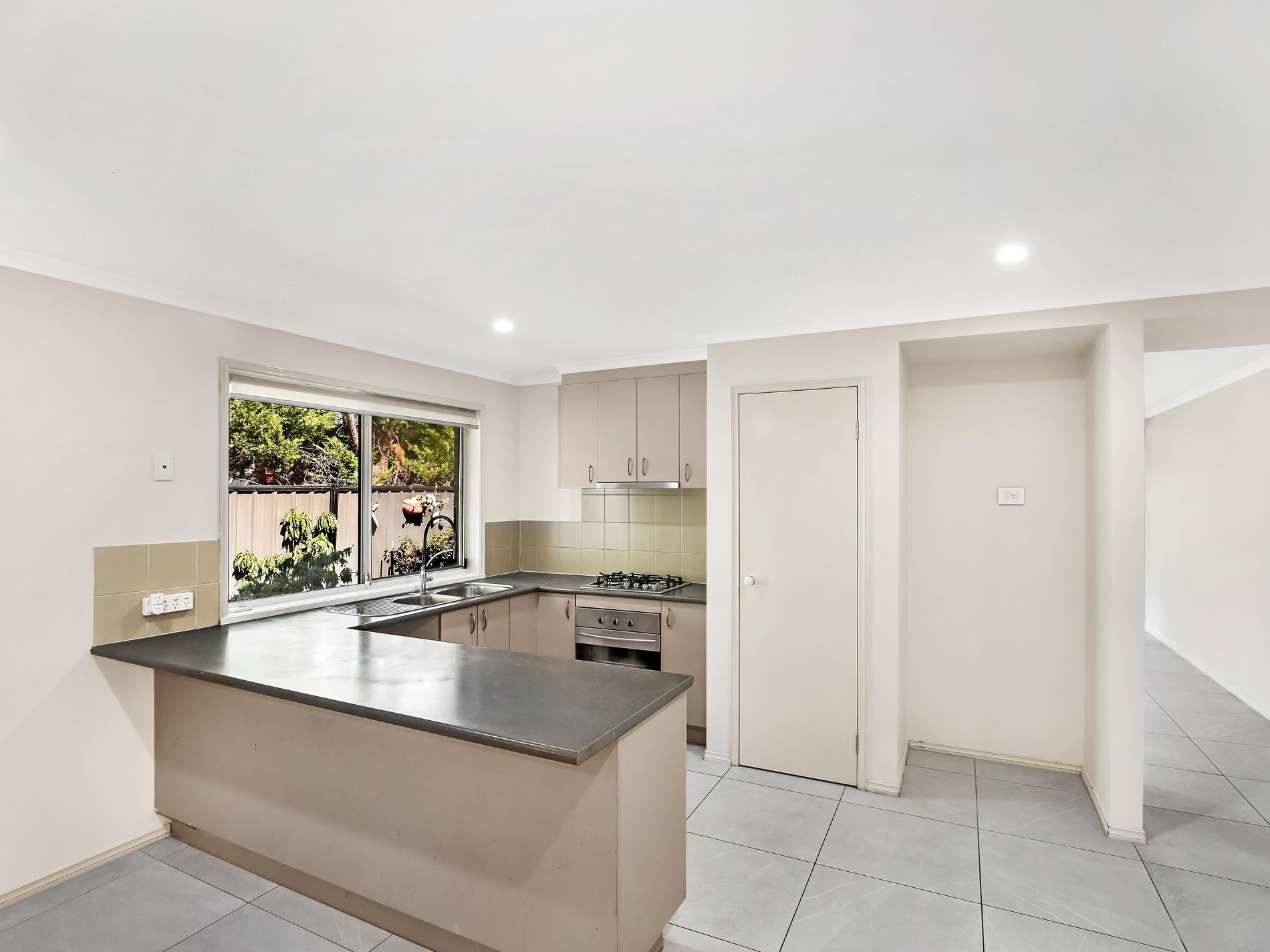 -Large kitchen with breakfast bar, gas stove top under bench oven